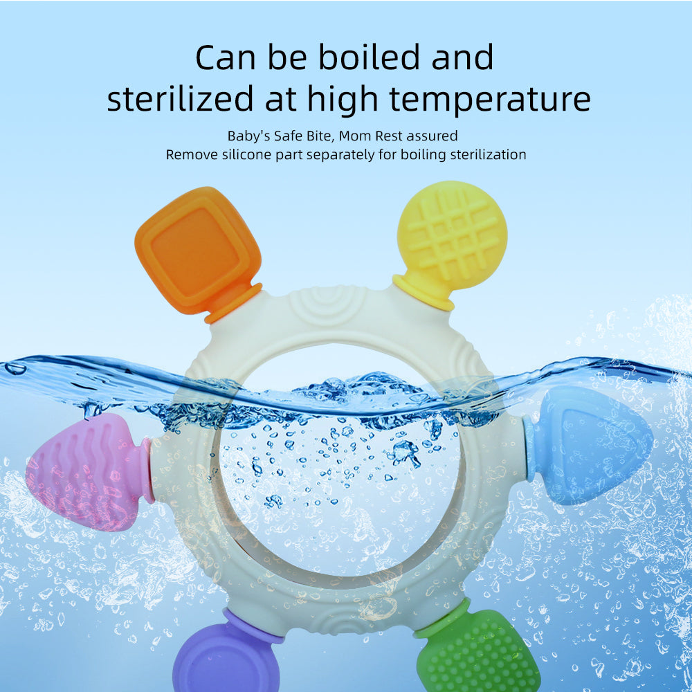 Combines teething relief with multi-sensory play
